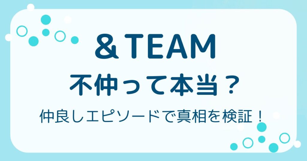 9人組グローバルグループ「&TEAM(エンティーム」。 そんな&TEAMに不仲説があるとSNSで話題になっています。 Yahooの検索欄にもこのようなキーワードがありました。 なぜ&TEAMの不仲説が出てしまったのか、そして実際どれほど仲の良いグループなのかを... -