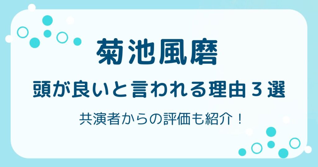 男性アイドルグループtimeleszのメンバーで俳優・タレントとしても活躍している菊池風磨さん。 「菊池風磨さんは実はすごく頭が良い」 そんな声が近年ますます増えているようです。 この記事でわかること ・菊池風磨は頭が良い・菊池風磨が頭が良いと言わ... -