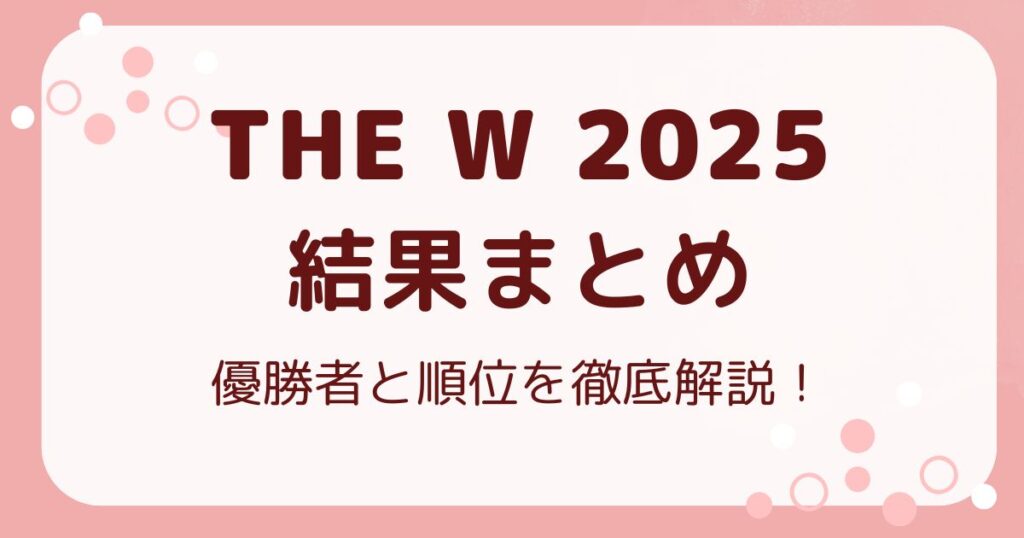 THE W 2025 結果まとめ!優勝者と順位を徹底解説!