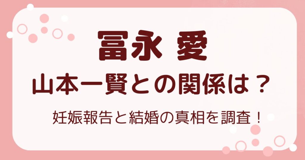 モデル、女優として活躍している冨永愛さん。 そして、俳優として活躍している山本一賢(やまもといっけん)さん。 冨永愛さんと山本一賢さんの関係が話題になっているようです。 なぜ2人の関係が話題になっているのか、そして冨永愛さんの妊娠・結婚につい... -