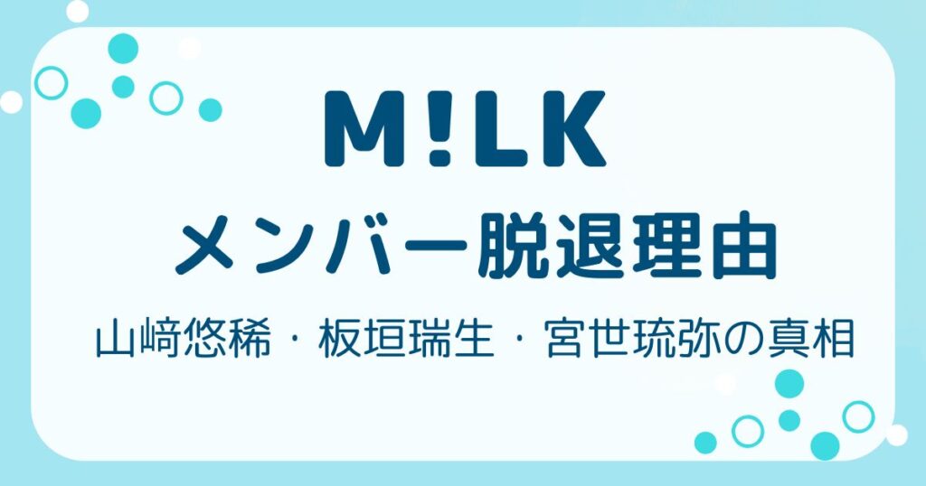 現在5人組のボーカルダンスユニットのM!LK(ミルク)。 これまで3人のメンバーがM!LKを脱退しています。 Googleの検索欄には下記のようなキーワードがありました。 SNSでは3人のメンバーの脱退理由が話題になっているようです。 この記事では3人の脱退の... -