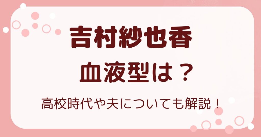 吉村紗也香の血液型は?高校時代や夫についても解説!