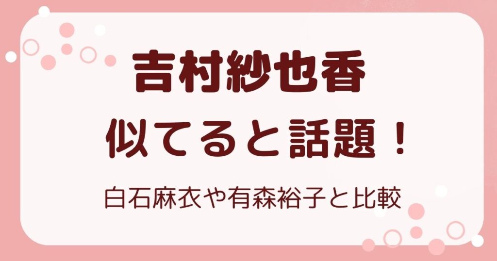 【画像】吉村紗也香が似てると話題!白石麻衣や有森裕子を比較