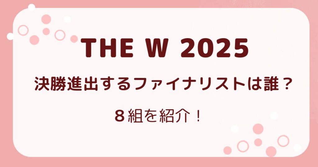 この記事では、THE W 2025 のファイナリスト8組が誰なのか調べてきました。